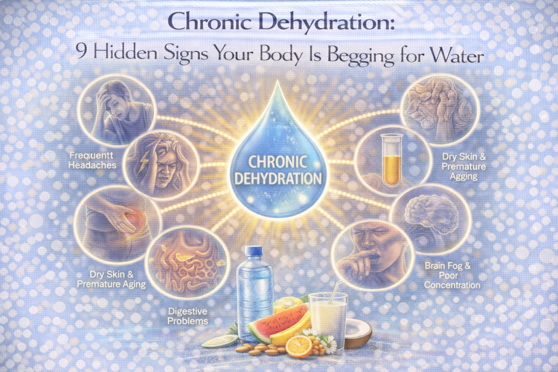 Introduction Most people think dehydration only happens when you feel thirsty. In reality, chronic dehydration develops slowly and quietly, damaging your energy, digestion, skin, and even brain health. Many people live dehydrated every day without realizing it. Let’s uncover the warning signs your body uses to ask for water — before serious health problems appear. 1. Constant Fatigue When your body lacks water, blood volume drops, forcing your heart to work harder. This results in persistent tiredness, even after proper sleep. 2. Frequent Headaches Dehydration causes the brain to temporarily shrink away from the skull, triggering headaches and migraines. 3.…
