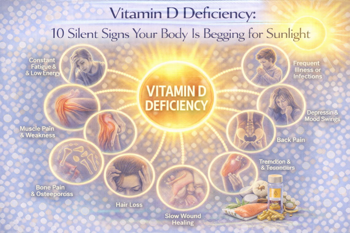 Vitamin D is often called the sunshine vitamin, yet millions of people worldwide are deficient without realizing it. This silent deficiency can slowly weaken your bones, immune system, mood, and overall health. Here are 10 hidden signs of vitamin D deficiency you should never ignore. 1. Constant Fatigue & Low Energy Feeling tired even after enough sleep? Low vitamin D affects energy production at a cellular level. 2. Frequent Illness or Infections Vitamin D strengthens your immune system. Deficiency can make you catch colds, flu, or infections more often. 3. Bone Pain & Weak Bones Vitamin D helps absorb calcium.…